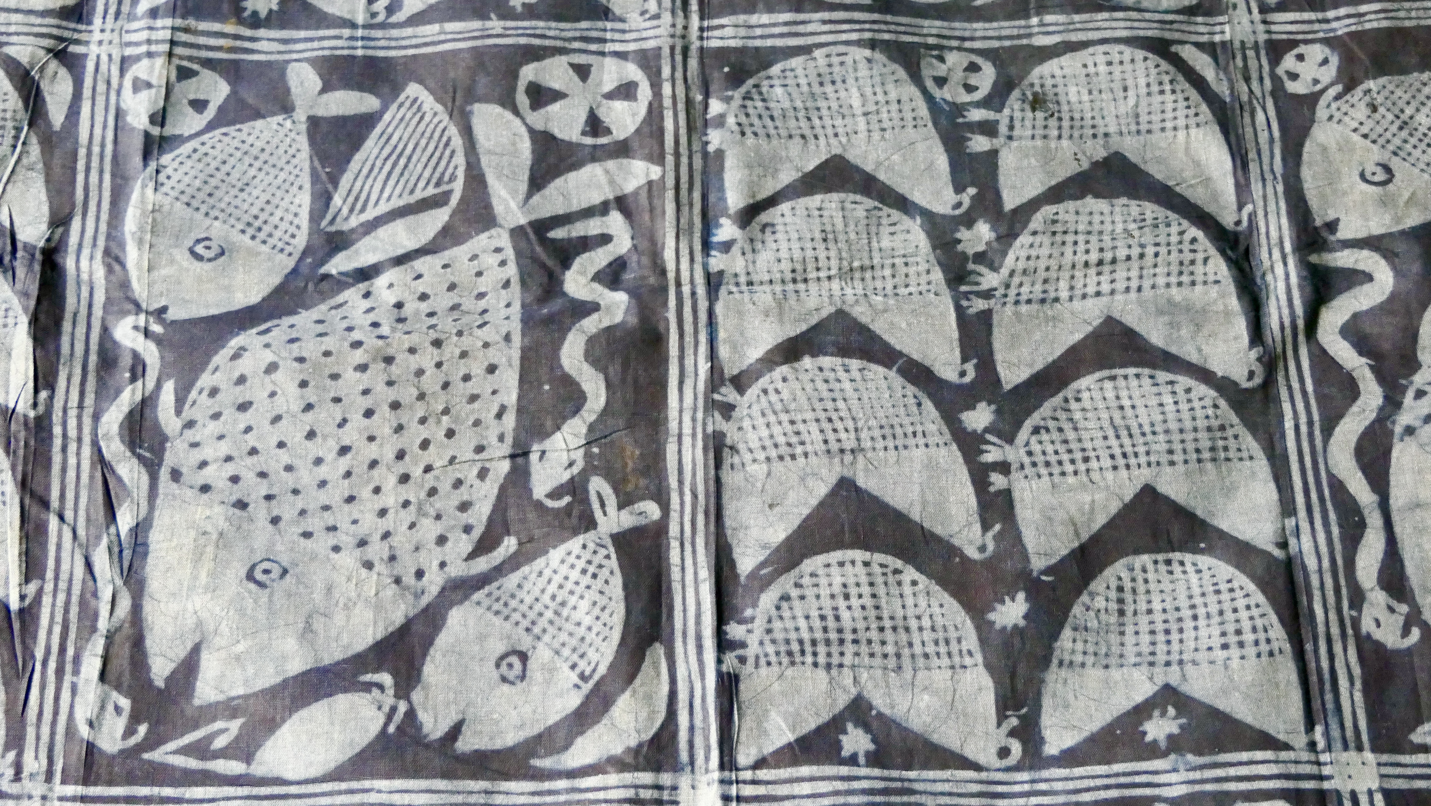 It is unlikely that Ellington knew how important indigo was to the Yoruba.  The place of aró (indigo) in the visual world.  How, whether in tie-dye or in àdìre eléko (tie-dye/batik), this dark and fragrant dye shaped the visual world. Here small cowrie shaped knots in a vast sea of indigo, there a string of hatched, hatch tags in rows upon rows once again in an infinite ocean of blue and then, in hand drawn squares, fish and cockerel motif blocks. Always, the variation of blue: corn blue, sky blue, faint grey blue, blue black, and indigo blue that is so deep that it reeks of blueness.