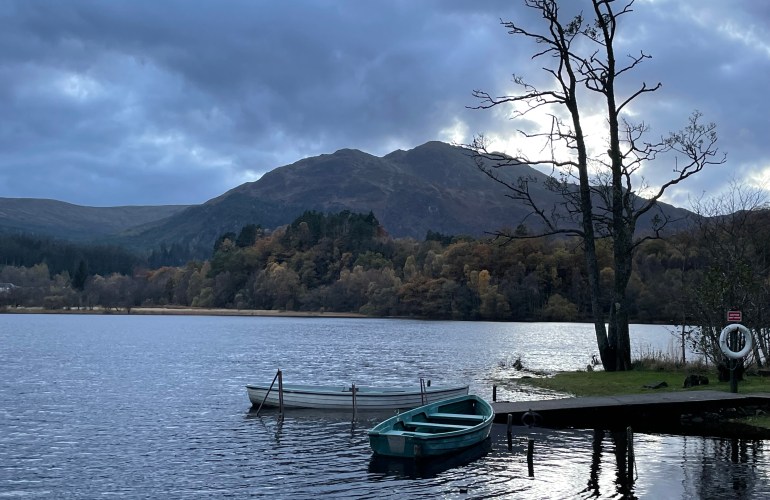 When we woke up and looked out through our window, there was the sea, fretted with the most subtle corduroy weave of indigo and in the horizon were hills, stretching from one end to the other in shades of grey through to black, separating the sea from the sky.